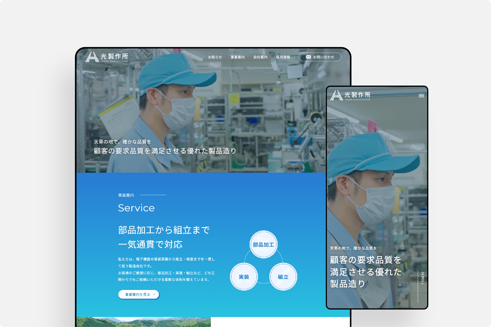 これまでWebサイトをお持ちでなかったため、光製作所様の強みや魅力を十分に伝える手段がなく、広報や採用の面で課題となっていました。